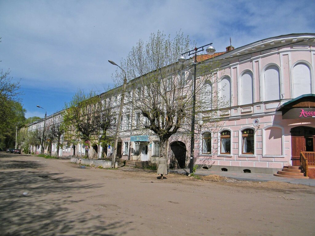 Два корпуса торговых помещений строились в центре города в середине XIX века, преимущественно, для проведения ежегодных ярмарок. Особенно бойкая торговля велась в летнее время, после прибытия судов с товаром. Местные купцы предлагали посуду, полотно, табак, пушнину, мед, рыбу и др. Сегодня торговые ряды — объект культурного наследия. Отреставрирован и используется по назначению лишь только один из корпусов. Второй — в полуразрушенном состоянии.