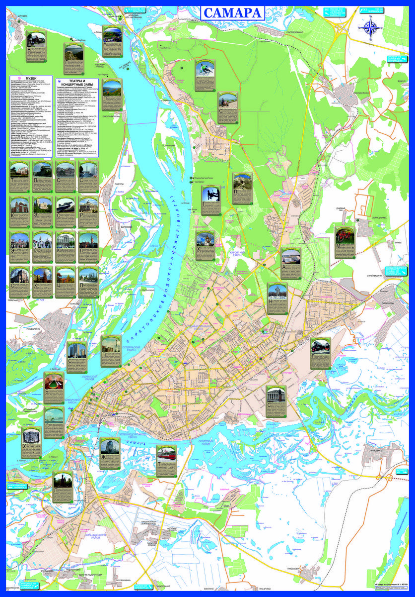 На карте Самары (Россия) вы также найдете лучшие места для шоппинга, самые известные и обязательные к посещению достопримечательности, церкви и многое другое.